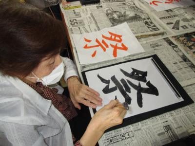 書道なんて久し振りだわ~と仰いながら、真剣になって取り組まれていました。
