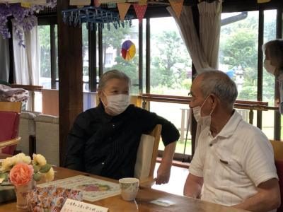 手洗い後にお茶を召し上がりながらの和やかな会話を楽しまれる父と母です