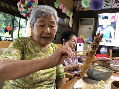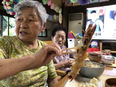 「ほんら~、見てみぃ」と天ぷらのでっかいエビにびっくりな母