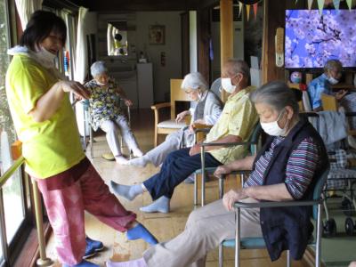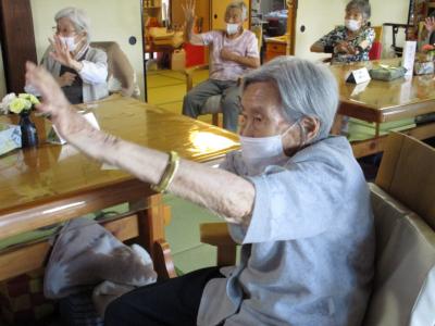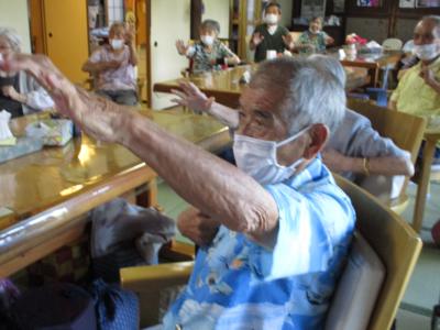 腕をしっかり伸ばしたり、身体をひねっていきます