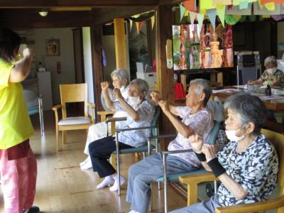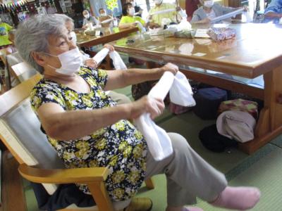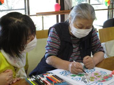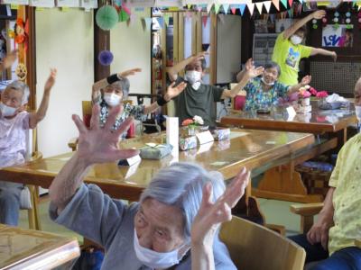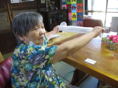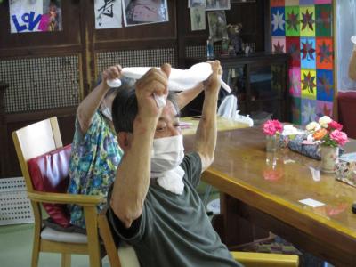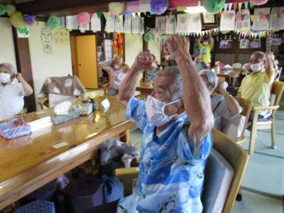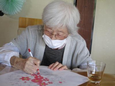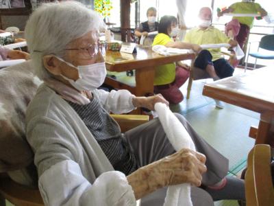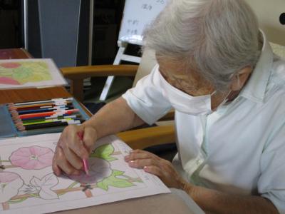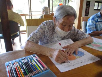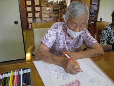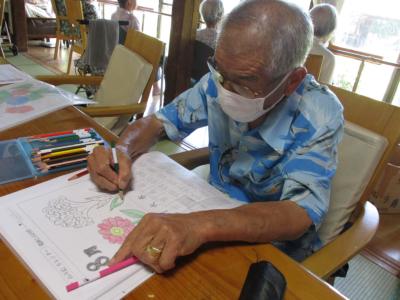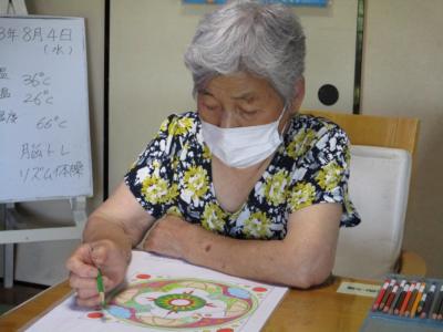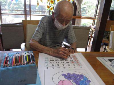 脳トレでは8月のカレンダー作りや季節の塗り絵で脳の