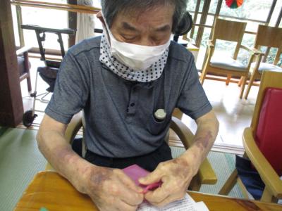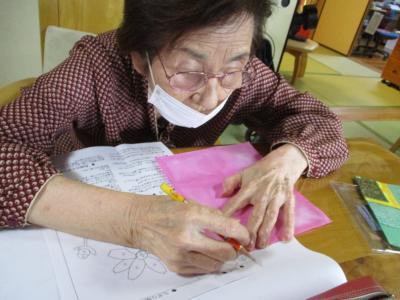 こちらの母は、ご趣味がちぎり絵ということもあり、どんどん進めながらもどうしたら和紙をちぎりやすいかを教えて下さいましたグッド (上向き矢印)