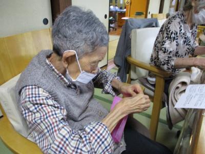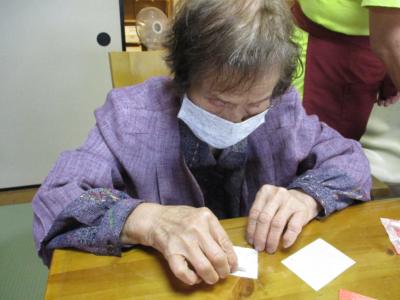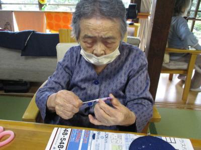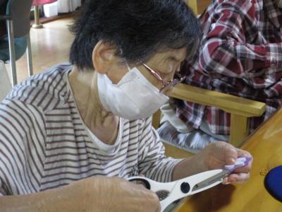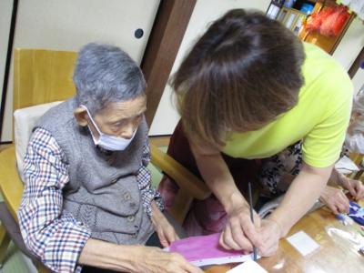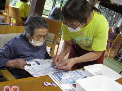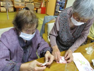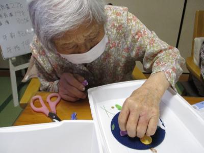 こちらの父母はカミちゃんと仲良くちぎり絵に挑戦