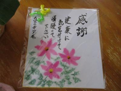 ちぎり絵の色紙とあんマドレーヌは父と母より感謝を込めて・・・