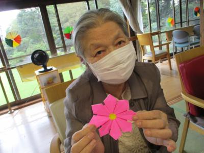 送迎時にはコスモスが風に揺れてとってもきれいでした