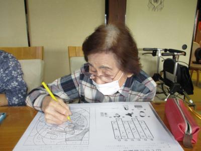 数字塗り絵や、文字の並べ替え問題等様々な取り組みで