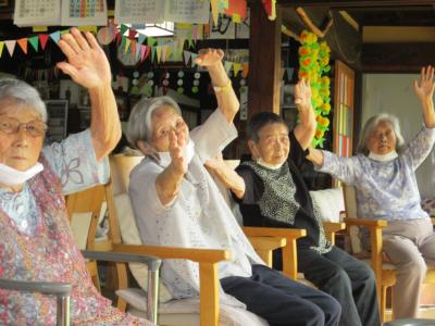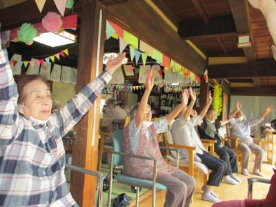 縁側では、イキイキハツラツ身体を動かす皆さんの姿。