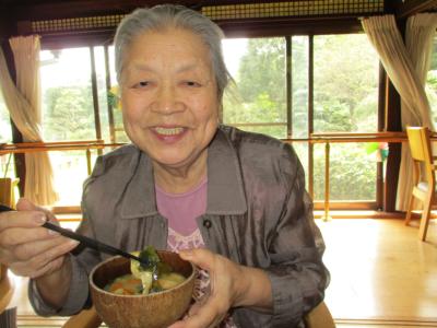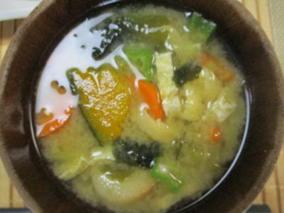 新鮮なお野菜たっぷり、そして今日は幸望庵で収穫されたばかりのオクラが入った格別のお味噌汁です