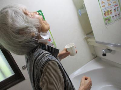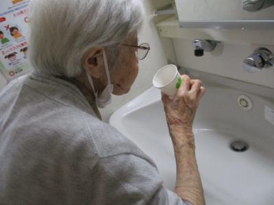 来庵された皆さんは洗面所に直行され、手洗い・うがい・手指の消毒を行ってから着席です。
