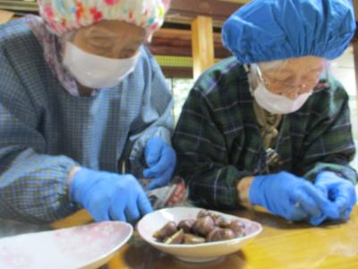 栗の皮を、形が崩れないよう丁寧に抜いて下さっています。