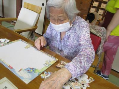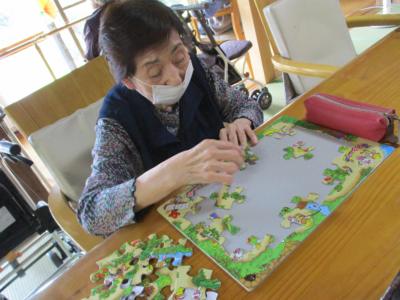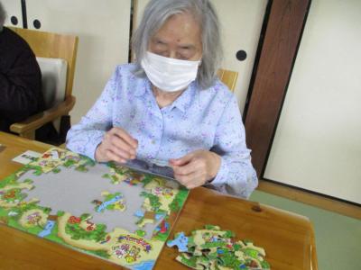 夢中になってパズルに取り込む母はずっと立って行なっていました