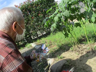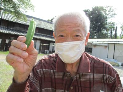 小さいのはまだ可哀そうだとちょうどいい大きさのオクラを見つけ、とっても嬉しそうな父でした