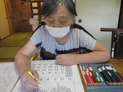 午前は、季節の暦の色塗りに取り組みます。
