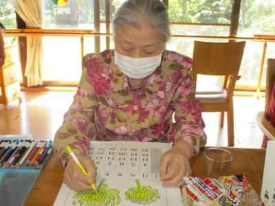 花咲く菊のお花を思い浮かべながら、丁寧に塗り進めるお母さん。
