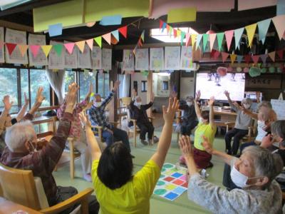 縁側では、熱心に身体を動かされる皆さんの姿