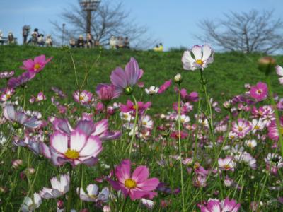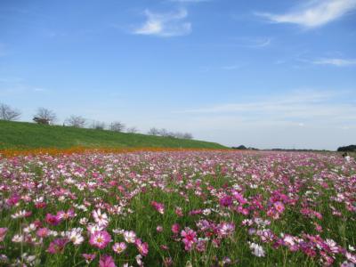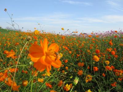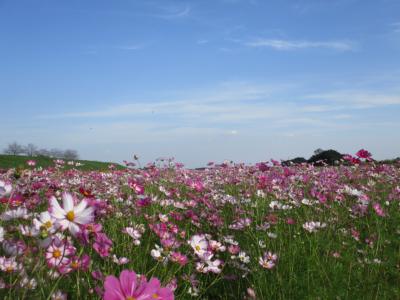 目の前には秋桜が広がり、澄み渡った青空がとても気持ち良く