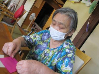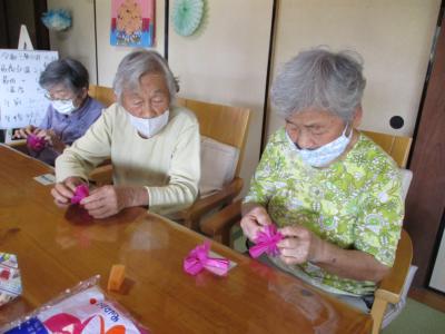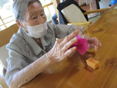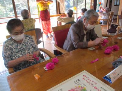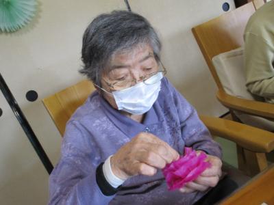 今日の脳トレの時間は部屋の装飾の為のお花作り