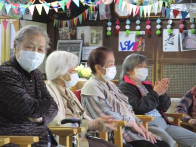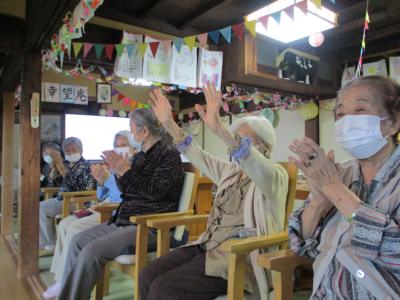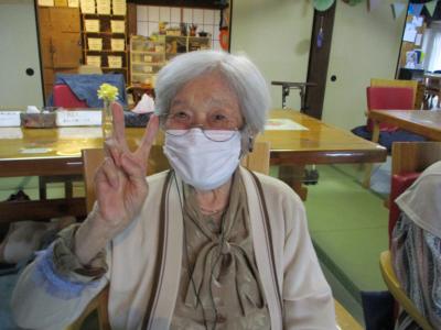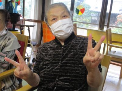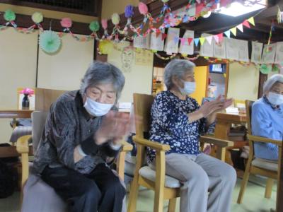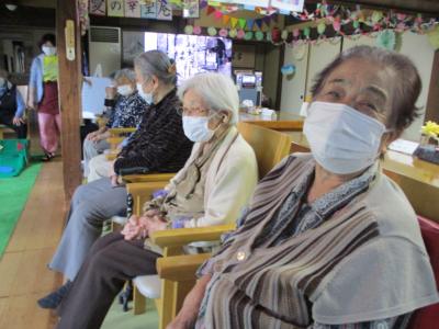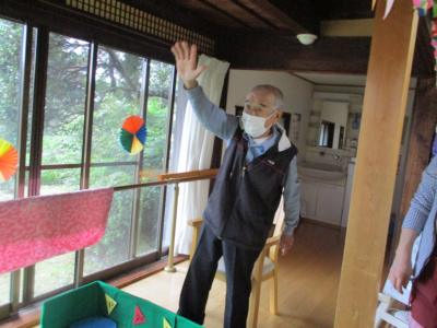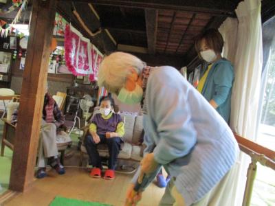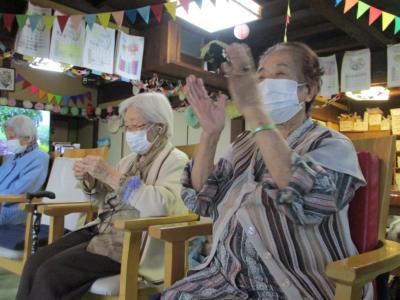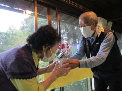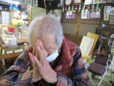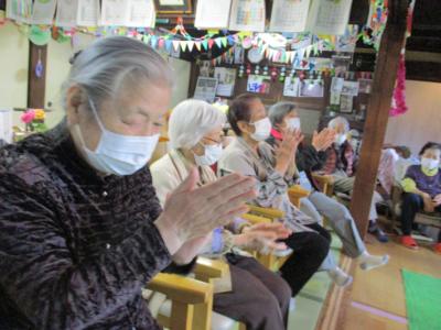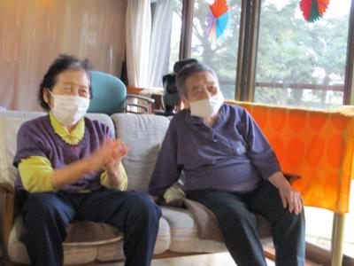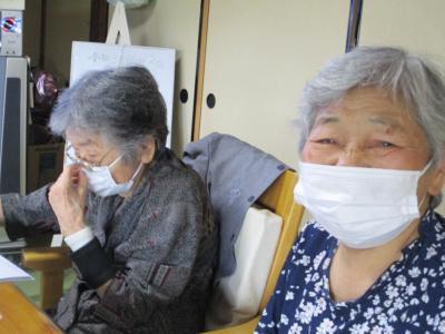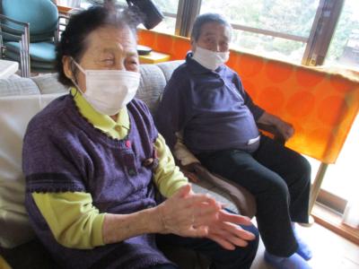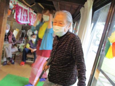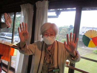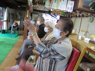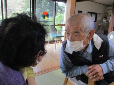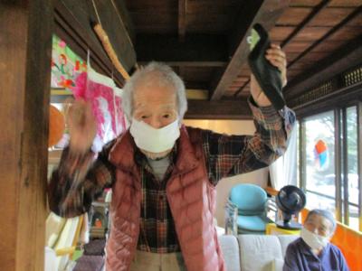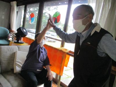 「がんばろーなぁ~!」と父と最高齢の母とがハイタッチ