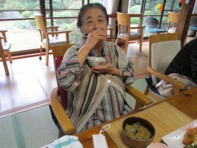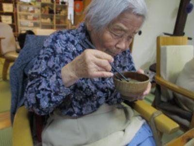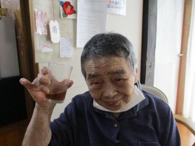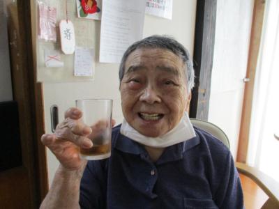 ご入浴後の麦茶を美味しそうに飲まれる母