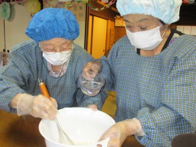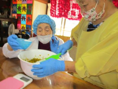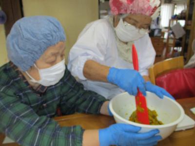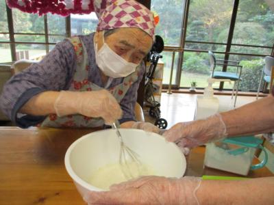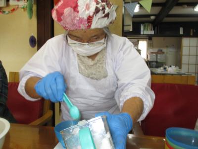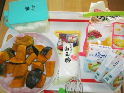 お楽しみの午後は、カボチャきんつば作りの続き、衣作りから始めま~す。