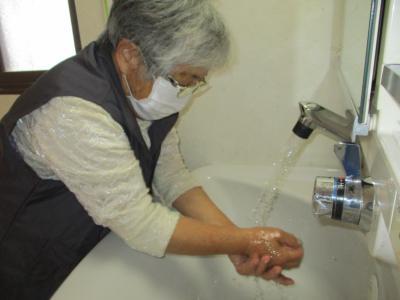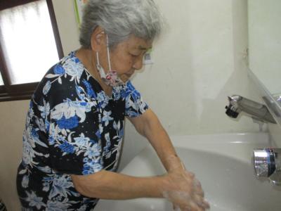 先ずは入念な手洗いを行ってから、手指の消毒です。