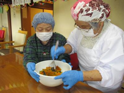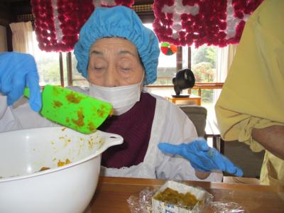 幸望庵のお部屋はカボチャの香りが漂う中、皆さんが熱中して取り組まれていました。