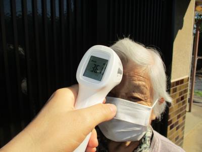 ご自宅までお迎えにあがったら車に乗る前に体温チェック