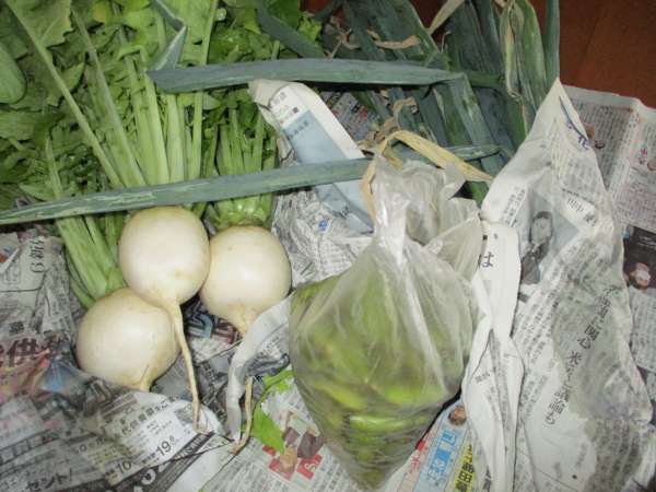 陽だまりの畑から聖護院大根と九条ネギと枝豆が届きました