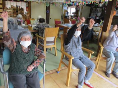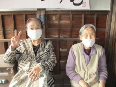 こちらでは、縁側にて機能訓練を頑張る母達の姿です。