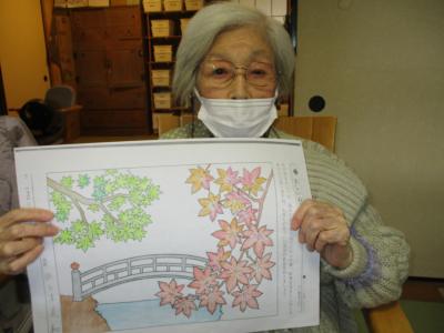 モミジが色付く紅葉の景色が素敵に塗られました