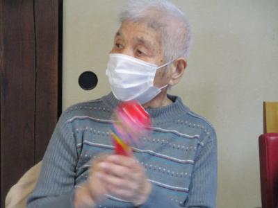 タンバリンやマラカスを片手に音頭をとる父、母