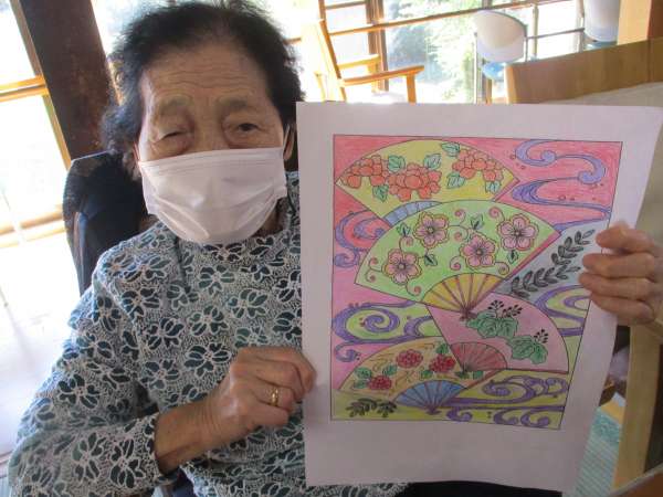 脳トレでは塗り絵や、スクラッチアート、間違い探し等を行い