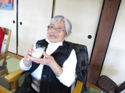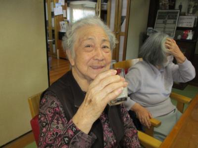 午後のレクリエーション始まる前に、豆乳バナナで栄養補給