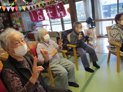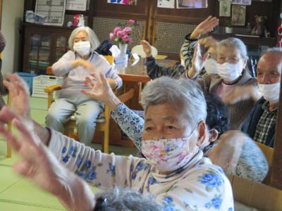 ごぼう先生と一緒に懐かしい歌に合わせて身体を動かします