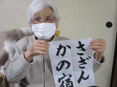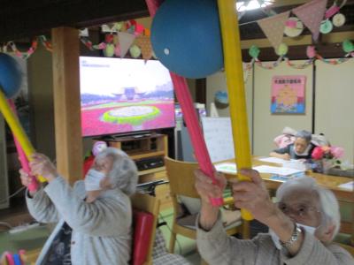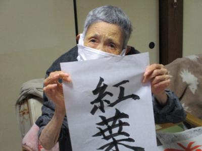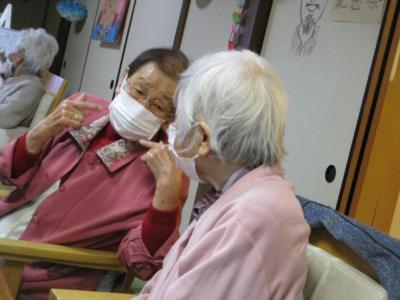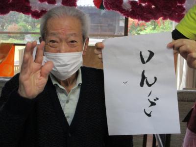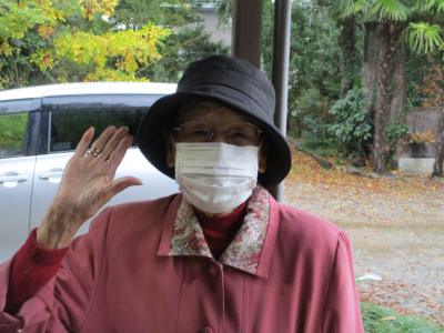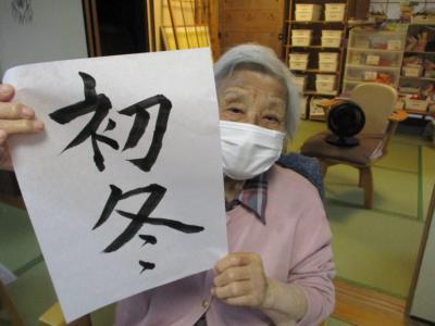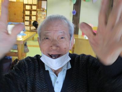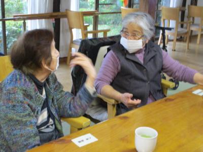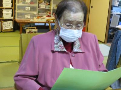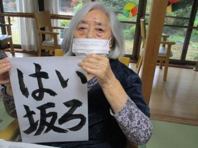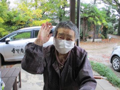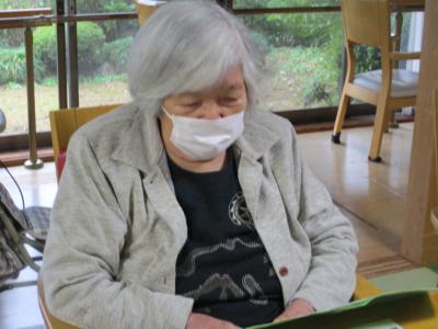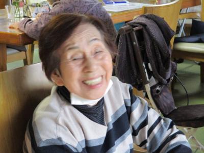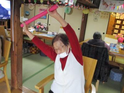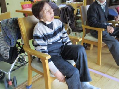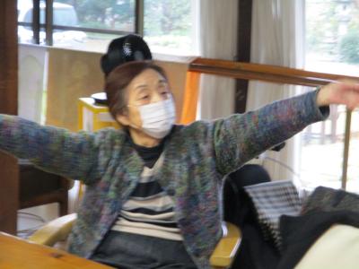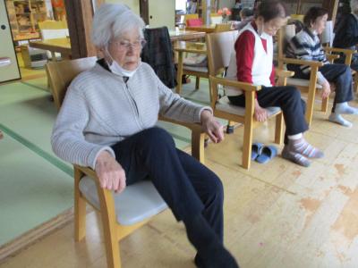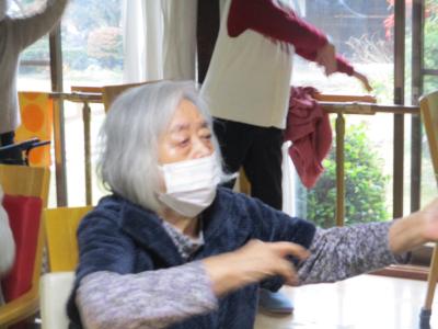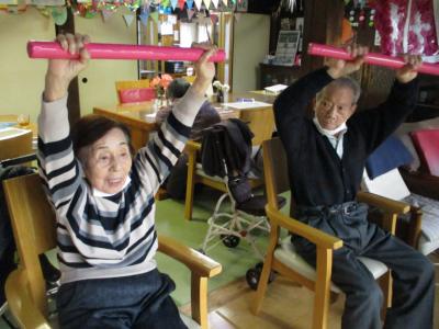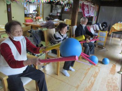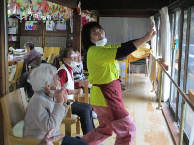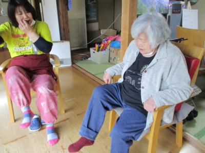 縁側では看護師のクミちゃんと一緒に機能訓練