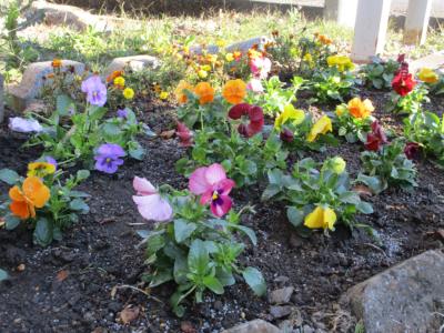 先週オーナーが、幸望庵入り口花壇のお花の植え替えをして下さいました。