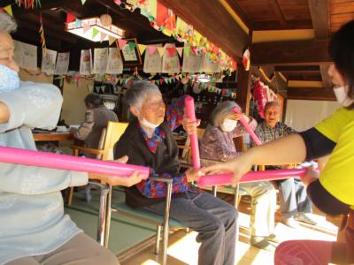 ポカポカの縁側では元気いっぱいに身体を動かす皆さんの姿