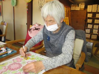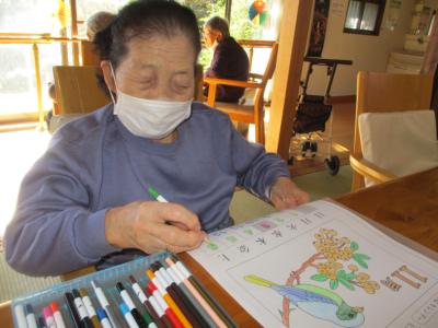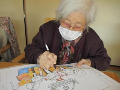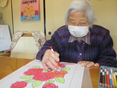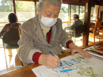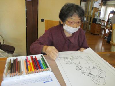 皆さんが夢中になって取り組まれ、塗り絵を通して集中力も養われます。