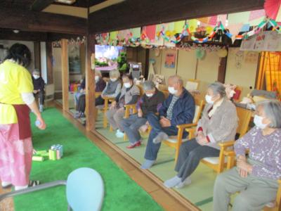たっぷりの陽射しが差し込むポッカポカの縁側では、皆さんが仲間と共にイキイキと身体を動かされています