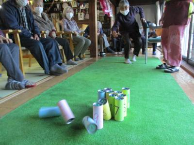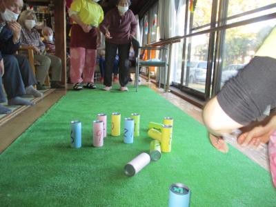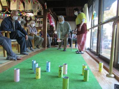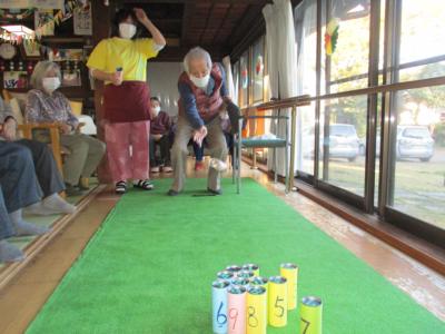 スタッフお手製のピンを倒して行き、50点丁度を目指して行きますよ~~