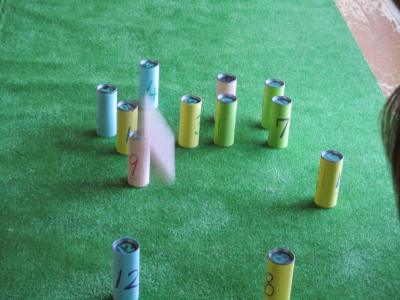 先ずは、始めの投球で並んだスキットル【ピン】をばらけさせます。
