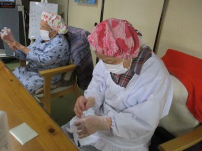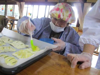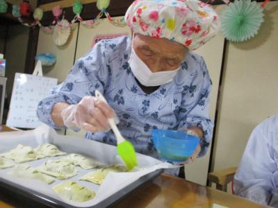 皆さんが手工芸を行なっている間に午前中作ったパイが