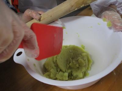 蒸かしたサツマイモの中にバター&砂糖&バニラエッセンスを加えて良く混ぜて