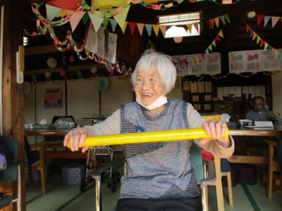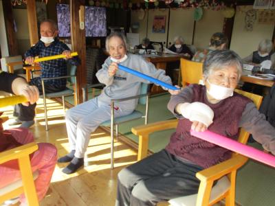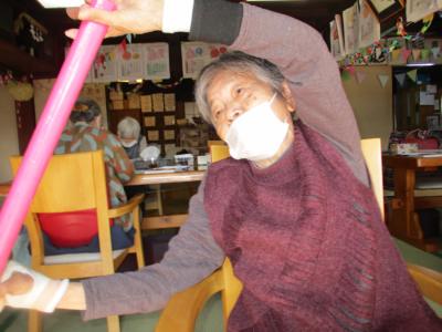 今日もクミちゃんお手製の棒を手に、笑顔いっぱい手足を動かす皆さんの姿が見られました(#^.^#)