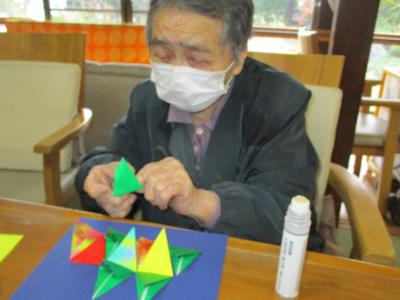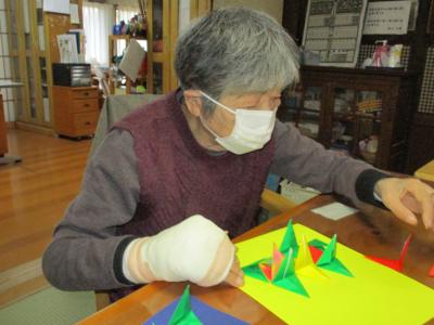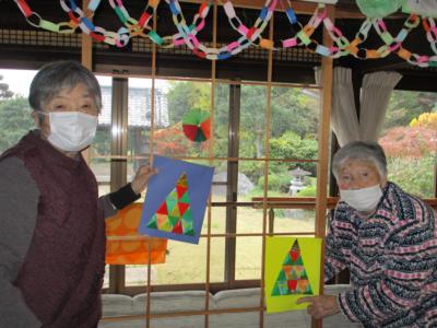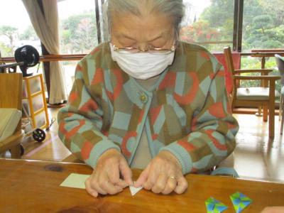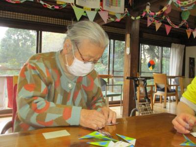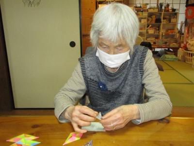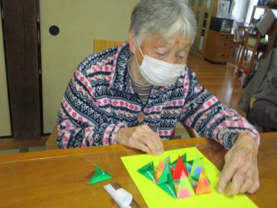折り紙で作ったツリーのパーツは、沢山使用しますので皆さんで協力して折って下さっています。