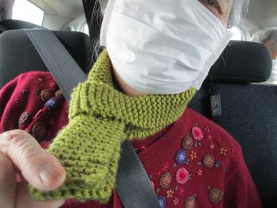 母が首元にされている、緑のマフラーも