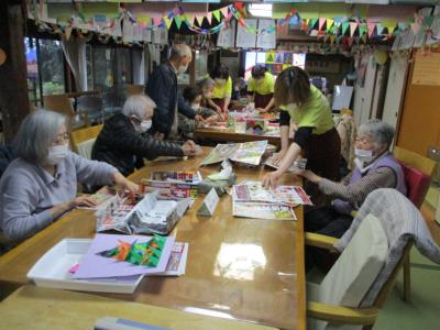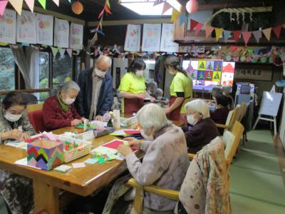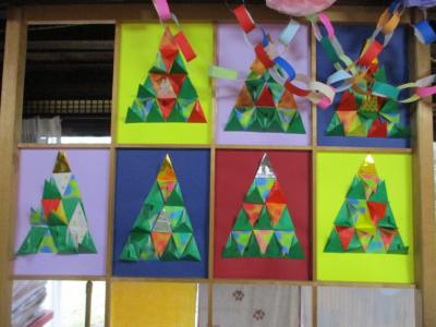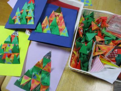 本日もたくさんの△の形を折っていただきました