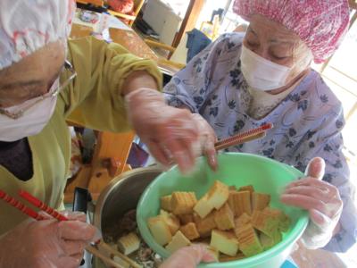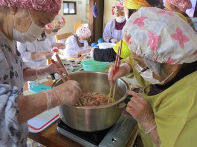 調理しながら、母とスタッフとの掛け合いも楽しい時間の一つなんですよ