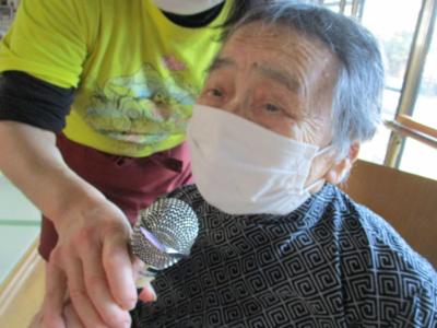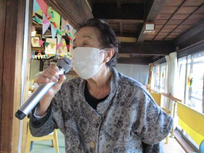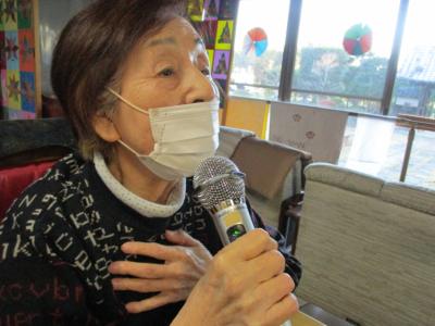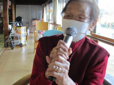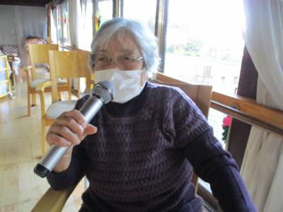 愛の幸望庵でのカラオケ大会に初参加の母です