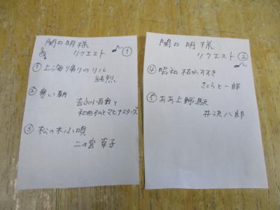 毎回リクエスト曲を考えてきて下さいます